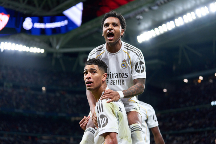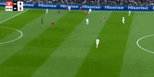 第38分钟,皇马前场右侧任意球机会,罗德里戈将球罚向禁区,贝林厄姆高高跃起头球攻门得手,皇马1-0塞维利亚。