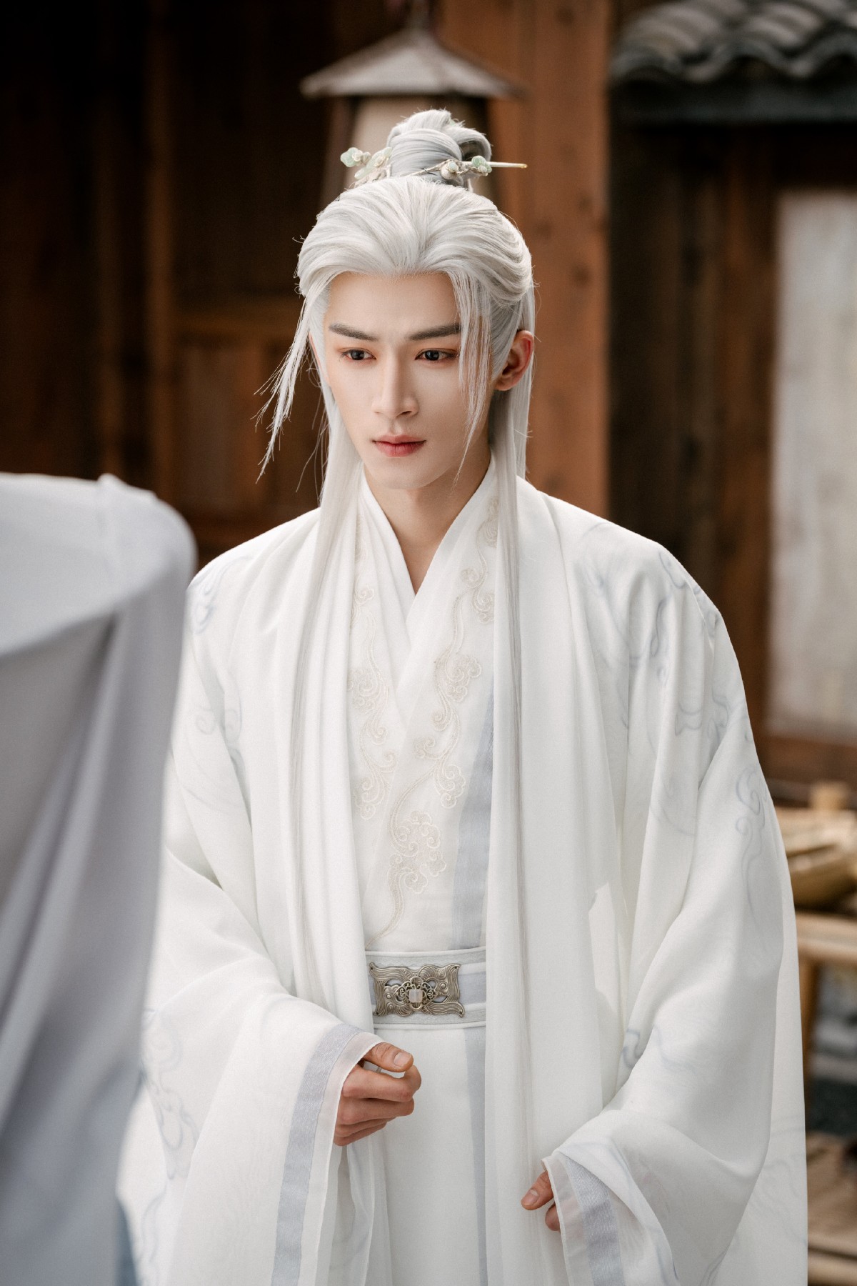 最后压轴的王星越,简直就是古装剧的“贵气模板”。窄脸、锐眉、长身玉立,往那一站,盛唐风骨自动加载。《唐宫奇案》里白发星官素衣如雪,眼神空灵似月下孤鹤;《墨雨云间》中红衣金冠,美艳中透着心机,腹黑里裹着风雅。他演的不是角色,是古人魂魄附体——那种文臣的傲骨、权臣的算计、谪仙的疏离,全在他一抬眸、一拂袖间。