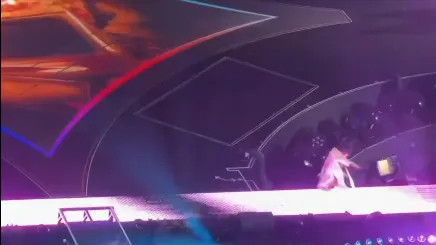 网友发布的视频显示,身着粉色外套的阿信走到主舞台与灯光连接处时没有注意到台阶,先是崴脚而后直接跌落到舞台下方,现场响起一片惊呼声。